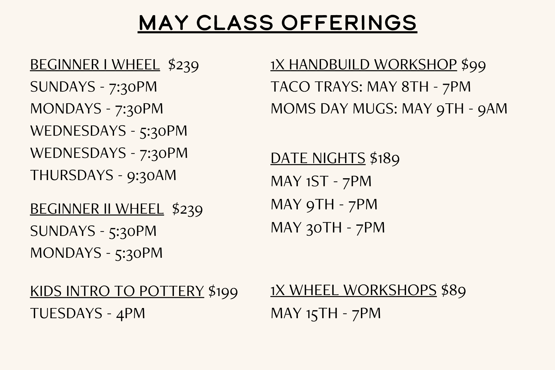 May 1X Wheel Throwing Workshop